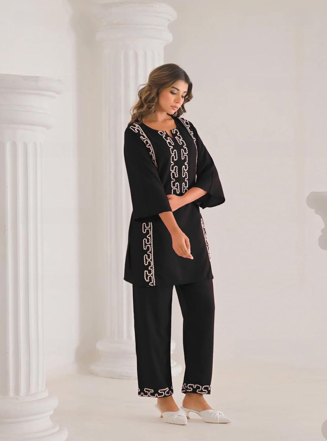 Women's Embroidered Cotton Blend Co-ordΒ Set Black
