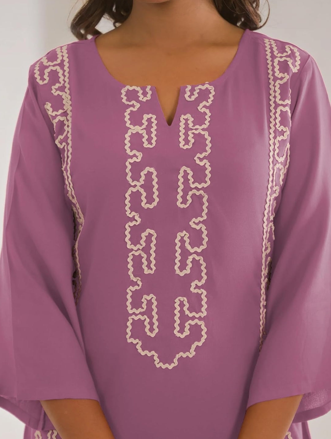 • Women's Embroidered Cotton Blend Co-ordΒ Set Pink